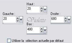 Effets/Effets de bords /Accentuer Opacité à 39% 5 - Calques / Nouveau calque Activer l'outil sélection personnalisée et placer ces chiffres