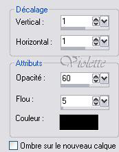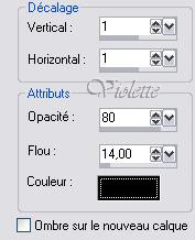Effets /Effets 3D/ Ombre Portée : 1/1/80/14/noir Désélectionner