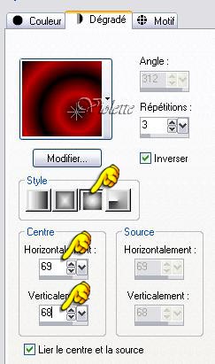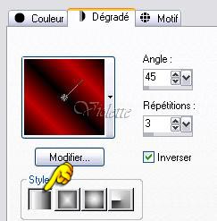 *** 1 - Ouvrir les tubes (ouvrir les calques) , les dupliquer et fermer les originaux I nstaller le filtre, le motif or et la Police dans les dossiers correspondants2 - Placer en avant-plan la couleur #c000000 et en arrière -plan la couleur #000000 Configurer le dégradé radial / répétitions : 3/ inverser coché