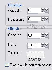 Désélectionner Calques/Fusionner le calque du dessous Effets /Effets 3D/Ombre Portée : 0/0/60/20/couleur #f2f2f2
