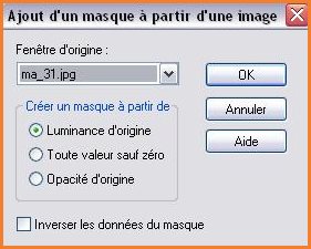 11 - Calques/Nouveau calque Remplir de couleur #000000 12 - Activer le masque "ma_31.jpg" Calques/Nouveau calque de masque/à partir d'une image/Ajout d'un masque à partir d'une image sélectionner le masque "ma_31.jpg"