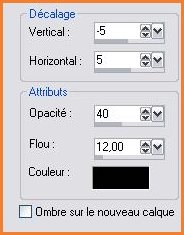 21 - Effets /Effets 3D/ Ombre Portée : -5/5/40/12/couleur noire