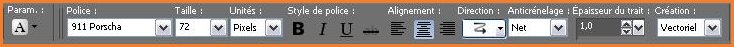 23 - Activer l'outil Texte/Police 911 Porscha /Taille : 72/ Trait : 1 /vectorielcouleurs : même configuration qu' au n°18