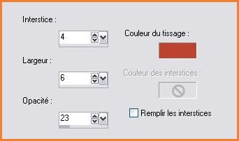 28 - Ouvrir une image transparente de 850 x 652 pixels remplir de dégradé n°14 Effets/Effets de Textures/Stores réglages du n°15 Effets/Effets de bords/Accentuer Édition/Coller comme nouveau calque