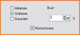 36 - Exporter en JPEG Optimisé *** 37 - Ouvrir une image transparente de 300 x 300 pixels Remplir de couleur #202020 ;38 - Réglages/Ajouter du bruit/Ajouter du bruit :