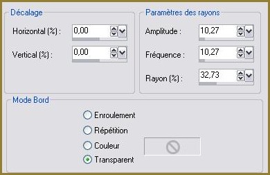 8 - Effets/Effets de Distorsion/Rayonnement réglages suivants :