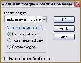 11 - Activer le masque maskcameron211.pspimage Calques/Nouveau calque de masque/à partir d'une image/Ajout d'un masque à partir d'une image