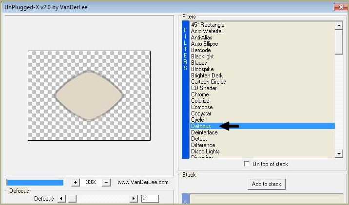 13 - Effets/ Filter Van Der Lee /Un Plugged-X / Defocus réglages suivants :