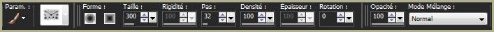 15 - Couches/ Nouveau calque couleur avant-plan #696f49 **Activer l'outil Pinceau et rechercher le pinceau Susan B 388.PspBrush configuré ainsi :