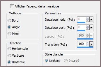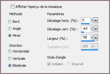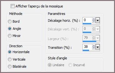 ** Effets/Effets d'image/Mosaïque sans jointure réglages suivants: