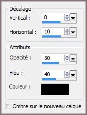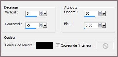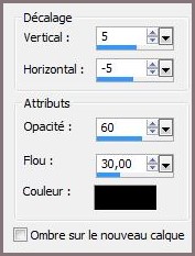**Effets/Effets 3D/Ombre Portée réglages suivants :