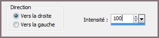 ** Couches/Dupliquer Activer le calque du tube original **Effets/Effets de Distorsion/Vent réglages suivants :