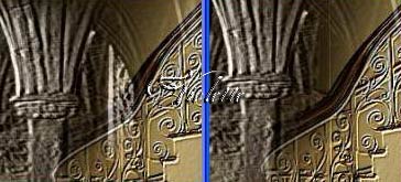 l'appliquer sur le tube original et la copie 13 - Ouvrir le tube escalier E&E-S-0113 escalera/Image /Redimensionner à 70%Copier/Coller comme nouveau calque Placer sur la partie inférieure droite 14 -Appliquer deux fois l'e ffet Blend Emboss avec ces mêmes paramètres15 - Activer le calque 2 et à l'aide de l'outil gomme effacer la partie sur la rampe d'escalier