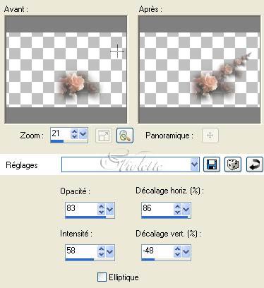 Agencer/déplacer vers le bas 44 - Effets/ Effets 3D/Ombre Portée :