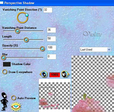 16 - Calques /Agencer /Déplacer vers le bas faire une seconde fois 17 - sur la copie Effets /Eye Candy3./Perspective Shadow: