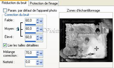 Répéter avec - 50 en Vertical et Horizontal 24 - Désélectionner 25 - Réglages / Réduction du bruit de l'appareil numérique :