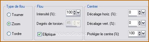 5 - Effets/Effets d'image/Mosaïque sans jointure par défaut 6 - Réglages/Flou/Flou radial: