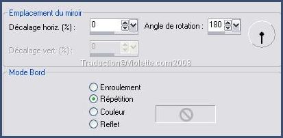 10 - Répéter l'effet de Réflexion / Miroir rotatif : H=0/A=180/Répétition