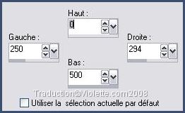 11 - Activer l'outil Sélection/ Sélection Personnalisée T=0/L=250/R=294/B=500