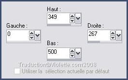 19 - Activer l'outil Sélection/ Sélection Personnalisée: T=349/L=0/R=267/B=500