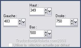 25 - Activer l'outil Sélection/ Sélection Personnalisée: T=349/L=483/R=750/B=500