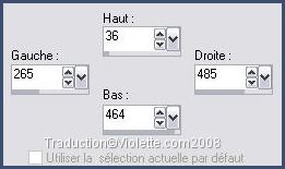 31 - Activer l'outil Sélection/ Sélection Personnalisée: T=36 / L=265 / R=485 / B=464