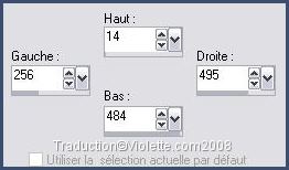 15 - Activer l'outil Sélection/ Sélection Personnalisée: T=0/L=457/R=501/B=500