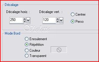 27 - Calques/Nouveau calqueSélection/Sélectionner Tout Sélection/Modifier/Sélectionner les bords de la sélection: Intérieur / 2Peindre avec la couleur foncée 28 - Effets/3D Effets/Ombre Portée : -1/1/70/3/#000000 Répéter avec des valeurs négatives : -1 en décalage vertical et horizontal Sélection/Désélectionner