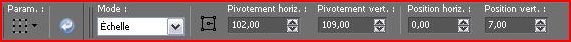 15 - Ouvrir le tube Marif_2007_07Juillet_misted_decor0196Edition/Copier/Edition/Coller comme nouveau calque 16 -Activer l'outil déformation et placer ces réglages: