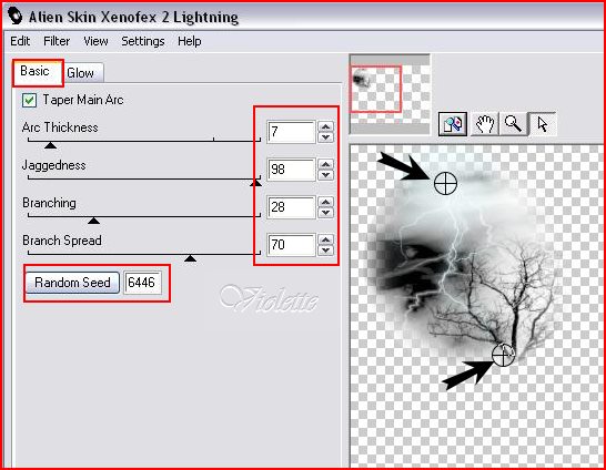 34 - Sur le calque 2 : Effets/Alien Xenoflex 2/ Lightning avec ces réglagesOnglet Basic