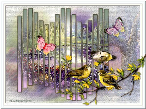 14 – Effets /Unlimited /Buttoms & frames/gradient frame cliquer sur le gradient et choisir le gradient 78 réglages : 27/0 15 - Sélection/Sélectionner tout/Sélection/modifier /contracter de 25 pixels Sélection/Inverser 16 -Effets/Effets 3D/Biseautage Intérieur Refaire une seconde fois désélectionner 17 – Activer vos tubes oiseaux, papillons et placer à votre goût 18 - Effets /Effets 3D/Ombre portée : 1/1/80/5/noir 19 – Signer/Fusionner tout 20 - Exporter en JPEG Optimisé
