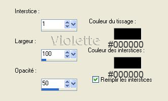 *** 1 - Ouvrir les tubes/ les images, les dupliquer et fermer les originaux 2 – Ouvrir une image transparente de 700 x 500 pixels Sélection/sélectionner tout 3 – Ouvrir l’image 26 février2006(2).jpg / Edition/copier /Edition/Coller dans la sélection Désélectionner 4 –Réglages/Netteté/ Netteté deux fois 5 – Effets / Effets FM Tile Tools /Blend Emboss par défaut 6 - Activer le tube FL_J2007/ Edition/copier /Edition/Coller comme nouveau calque le placer vers la droite Mode du calque : Luminosité héritée 7 - Activer le tube YokaPoto’s/ Edition/copier /Edition/Coller comme nouveau calque le placer à gauche 8 - Image /Ajouter des bordures : 2 pixels couleur foncée de l’image 9 - Image /Ajouter des bordures : 25 pixels couleur claire de l’image sélectionner avec la baguette magique Effets /Effets de texture/textile :