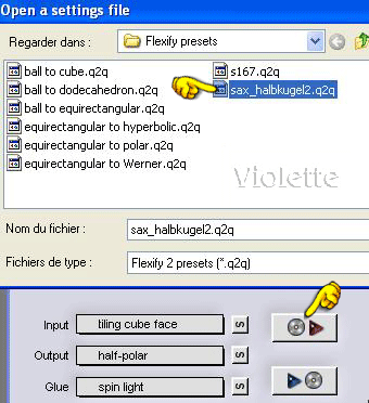 *** 1 - Ouvrir les tubes, les dupliquer et fermer les originaux Installer le preset sax_halkugel2.q2q dans le dossier des presets du filtre Flexify 2 - Ouvrir une image transparente de 600 x 425 pixels Sélection/sélectionner Tout 4 - Activer l’image sonne6.jpg/Edition/copier /Edition/Coller dans la sélection Désélectionner Dupliquer et rester sur le calque supérieur 5 – Effets/Flexilfy/rechercher le preset sax_halkugel2.q2q
