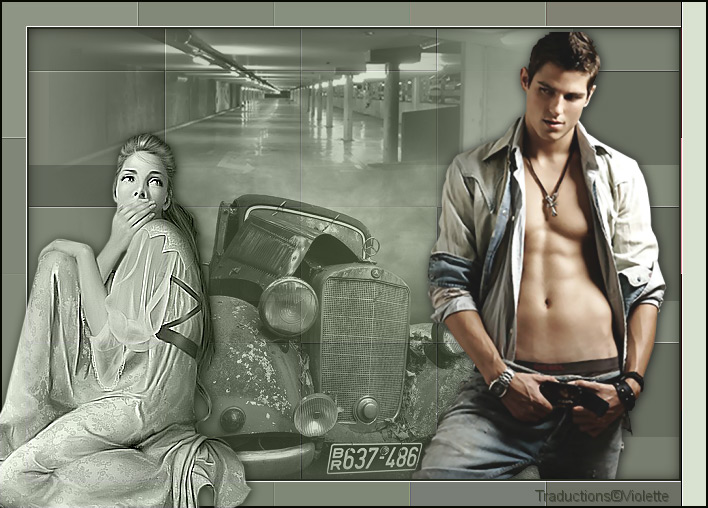 Dupliquer/image/renverser Opacité à 50% 7 – Effets/Effet de bords /Accentuer davantage 8 - Activer le tube scenery 14/Edition/copier /Edition/Coller comme nouveau calque Opacité à 60% Mode du calque : Luminance héritée Le Placer en haut à gauche ( voir modèle ) 9 - Activer le tube auto de Marif/ Edition/copier /Edition/Coller comme nouveau calque le placer en bas Opacité à 70% Mode du calque : Luminance héritée 10 - Activer le tube Stéphane/Edition/copier /Edition/Coller comme nouveau calque le placer à droite 11 - Effets /Effets 3D/Ombre portée : 1/1/100/15/noire 12 – Image /Ajouter des bordures : 2 pixels couleur foncée 13 – Image /Ajouter des bordures : 25 pixels couleur claire /Sélectionner avec la baguette magique Effets /Effets de distorsion/Pixellisation comme au n°6 Effets/Effet de bords /Accentuer davantage 14 – Sélection/Inverser 15- Effets/ Effets 3D/Découpe :